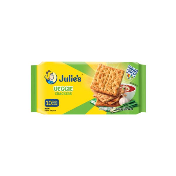 Light and crispy Vege Crackers, baked to be the perfect savoury snack that you can enjoy all the time. The dehydrated spring onions and fragrant garlic powder give it an unique aroma that makes the crackers so good to eat it on its own!